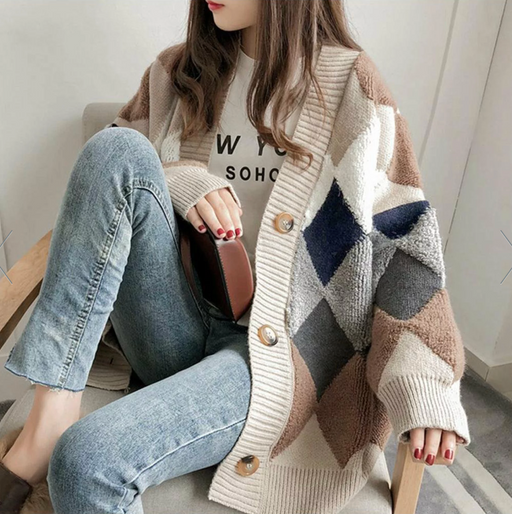 ノーブランドクラシックなアーガイル柄を、現代的なビッグシルエットにアップデートしたニットカーディガン。 落ち着いたトーンのマルチカラー配色が、コーディネートに奥行きと季節感を与えます。 存在感のあるディテール: 立体感のある編み地と、アクセントになる大きめのマーブル調ボタンが高級感を演出。 リラク...