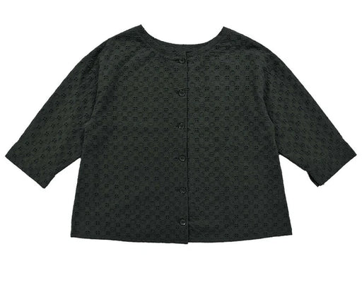 Keitto春にも好評いただいたロールカラーの布帛プルオーバー。ロール部分を立ててハイネックとしてもご着用いただけます。微起毛のビエラ生地を使用。やわらかい肌触りであたたかな着心地です。後ろ開きのボタンには七五三のシーンにちなんで千歳飴の袋の彫り柄を入れました。ロゴは「子供の成長のお祝い」という意味のフィ...