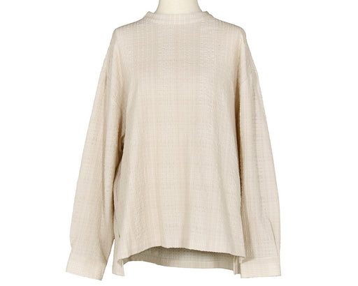 LILASICコットンシャーリングプルオーバー ・明るいカラーの先染めチェック柄が春らしさを感じる、プルオーバーブラウスです。衿元は詰まり過ぎないスタンドカラーなので、インにSJCW5621の接結天竺ハイネックプルオーバーを重ねる着こなしなどもおすすめです。・コットン素材にストレッチ糸を織り込むことで...
