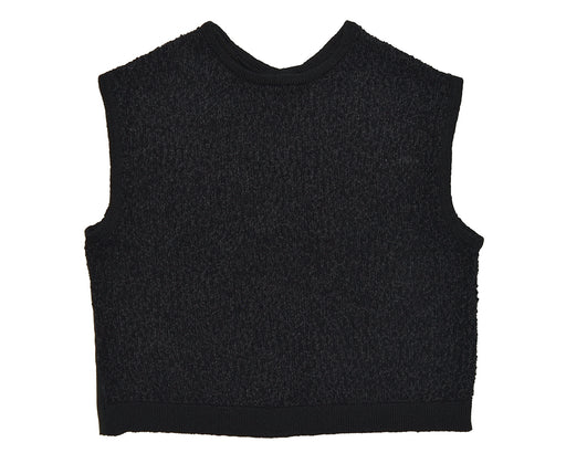 Keittoニットと布帛が切り替えになった前後着用可能なベスト。ニットはポコポコとしたファンシーヤーンを使用し、編地が透け過ぎないので長い期間着用できます。布帛はサラッとした涼し気なポリエステル生地を使用。手づくりマルシェのシーンにちなんで、フィンランド語で「手づくり」というロゴが入ったボタンを付けました...