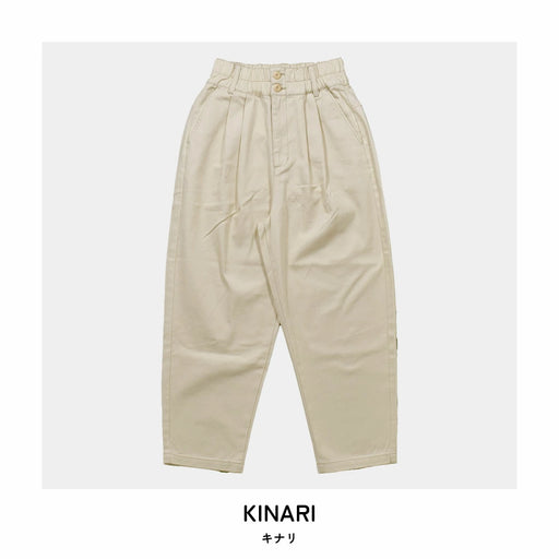 Keitto後ろウエストゴム入りで履きやすいワイドパンツ。細見えするように切り替えとステッチを入れて、縦のラインを強調したデザインになっています。フロントのタックボタンは「いのちつながる」という意味のロゴをフィンランド語で入れました。後ろの右ポケットのピスネームは生命が誕生し広がっていくイメージの図案入り...