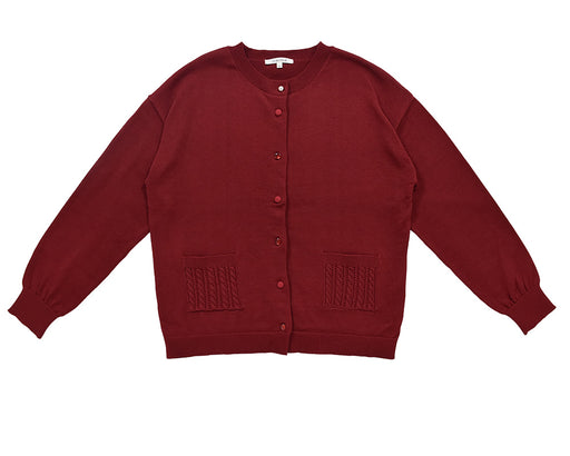 Keittoパール調のボタンなど、きれいめないろいろボタンがついたカーディガン。第一ボタンにパール調のボタンを使用。その他はサテン生地のくるみボタンや、シンプルなボタンできれいめに仕上げました。レーヨン混の滑らかな風合いで、厚すぎずコートの中にも着やすい素材感です。ケーブル編みのポケットもデザインポイント...