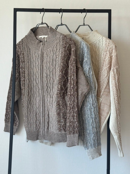 詳細を全部見るスープケーブル配色ZIPカーディガン