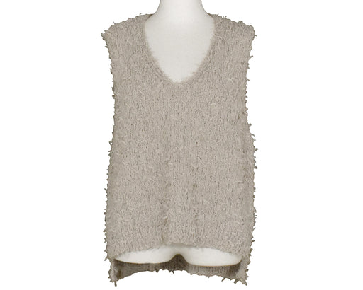LILASIC・ふわりとした表情感のあるチュールテープヤーンで編み立てたニットベストです。シンプルなVネックデザインでありながら、素材感でパッと華やぐ1着です。秋口はTシャツやタックトップと合わせて、気温が下がってくればタートルネックニットを重ねたりと長いシーズン着こなしを楽しめます。・チュールテープが編み...