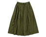 少し張りのある高密度の生地のギャザースカート。ウエストにボックスタックを入れ、立体感はありながらギャザー部分を減らすことで、ウエスト部分をスッキリとさせました。裾にかけてふんわりとしたAラインのシルエットで、大人っぽいデザインになっています。ウエストのピスネームや配色のカン止めでアクセントをプラスしました。