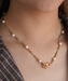 天然アベンチュリンと淡水パールを組み合わせた、洗練されたデザインのネックレス。