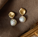 【JOJONO】マットゴールドの淡水パールピアス